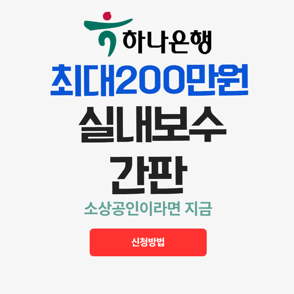 공사를 먼저 진행하고 결과를 제출한 뒤, 하나은행에서 서류 심사를 거쳐 현금으로 최대 200만 원까지 지원해 줍니다.
